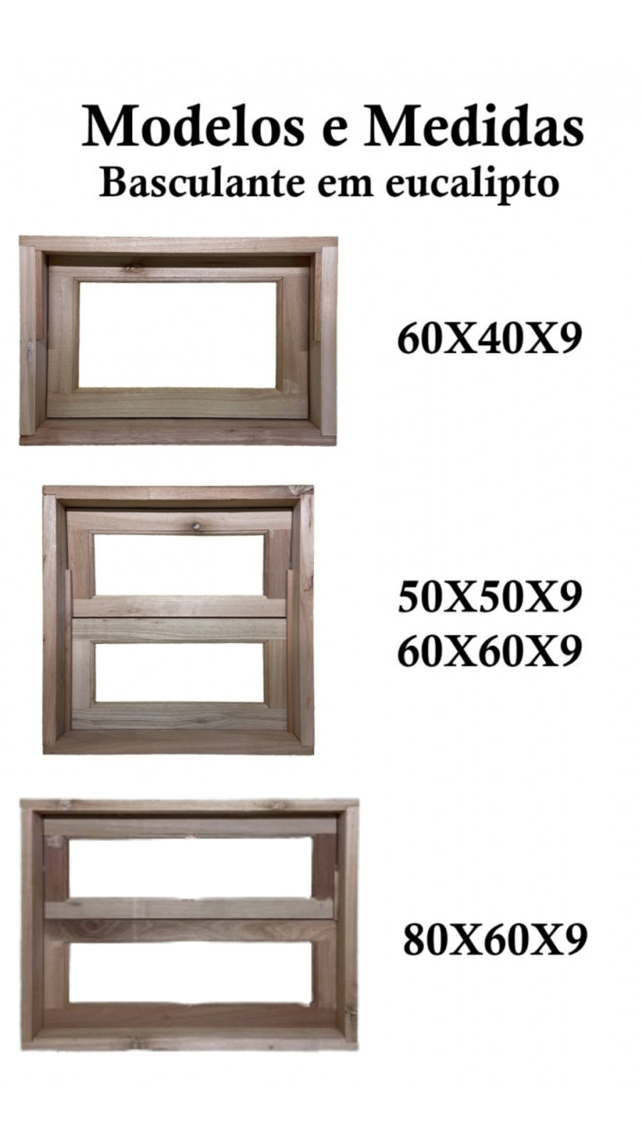 Janela basculante em eucalipto, sem acabamento lixado. Possui variáveis medidas com marco padrão de 9 centímetros. As imagens foram feitas a partir de amostras, portanto as unidades podem apresentar alterações de cor e textura. Não há filtro nas fotografias. Este modelo de abertura não contém ferragem de tranca. Há acompanhamento de guarnições para 1 lado da abertura. A madeira de pode conter nó.Produto em estoque e pronto para retirada após confirmação de pagamento. * Pagamentos com cartão de crédito estão sujeitos a juros de parcelamento.
