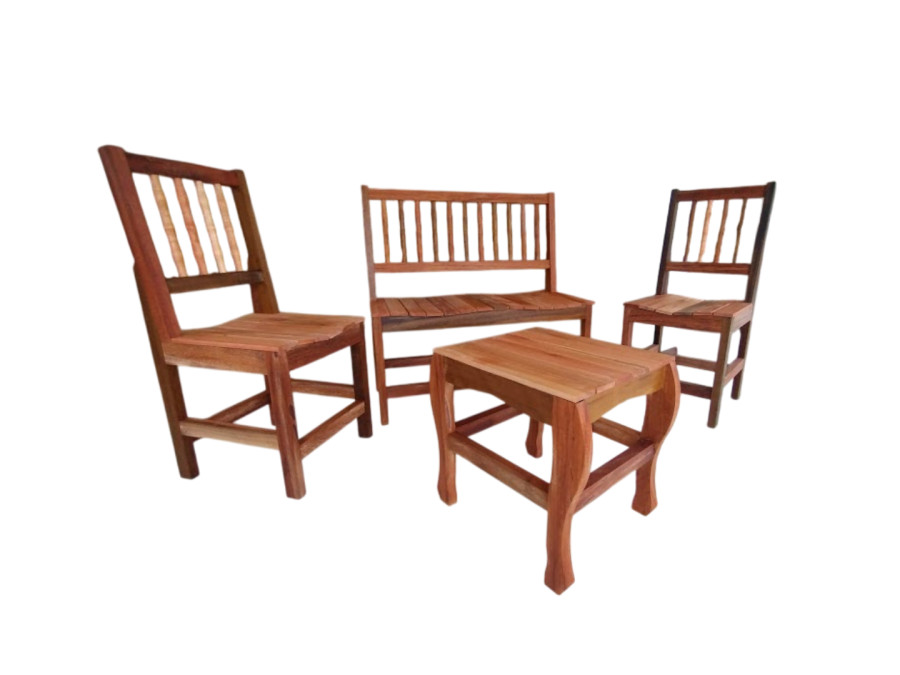 Conjunto composto por uma mesa de centro, duas cadeiras e um banco. As cadeiras e mesas são produzidas com madeira de itaúba, angelim e eucalipto.As imagens foram feitas a partir de amostras, portanto as peças podem apresentar alterações de cor e textura. Não há filtro nas fotografias. A madeira de pinus tratado contém nó. Produto em estoque e pronto para retirada após confirmação de pagamento. Fabricação própria * Pagamentos com cartão de crédito estão sujeitos a juros de parcelamento.