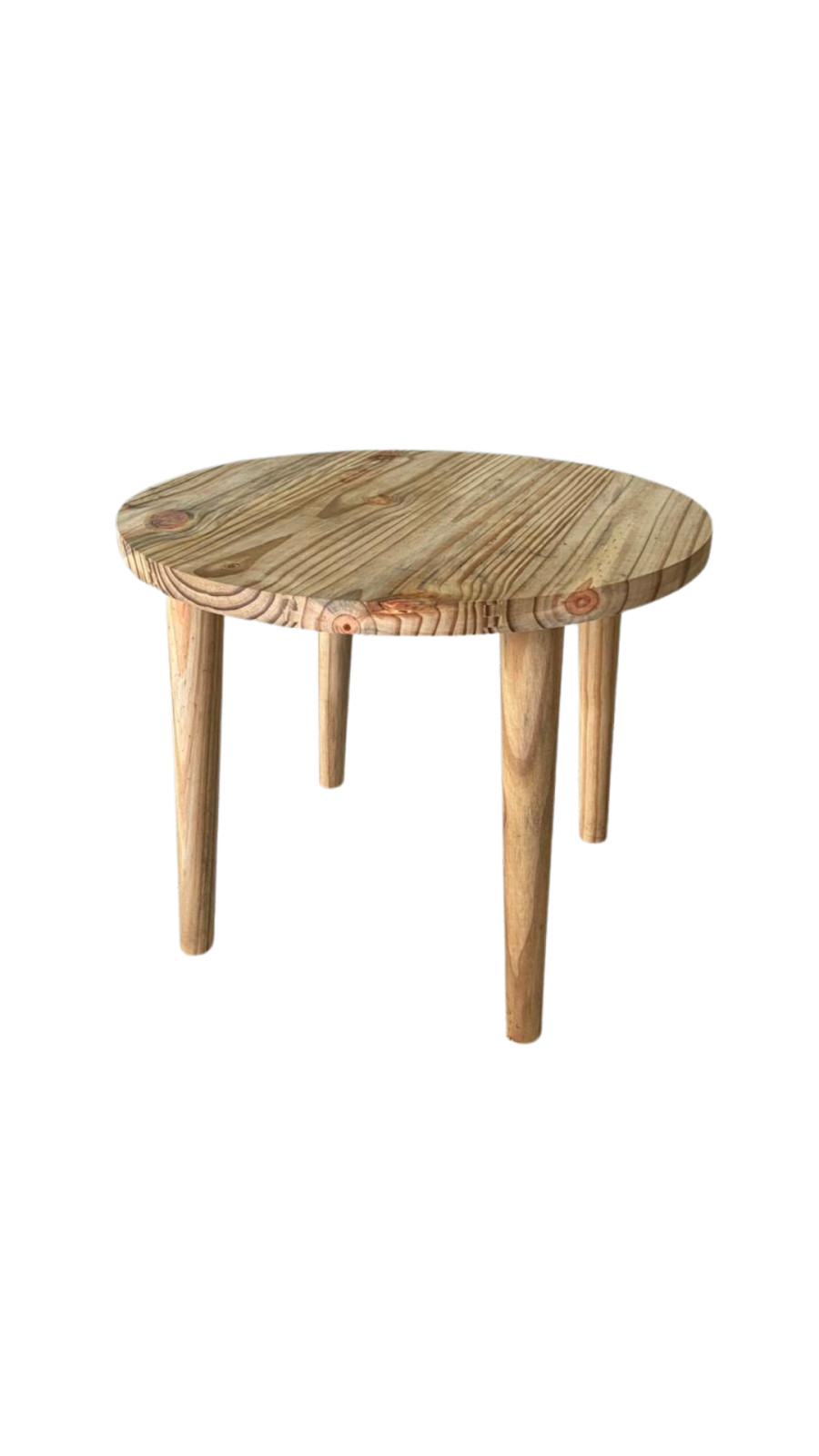 Mesa Infantil Redonda em pinus tratado. Possui 58 centímetros de circunferência e 46.5 centímetros de atura.As imagens foram feitas a partir de amostras, portanto as peças podem apresentar alterações de cor e textura. Não há filtro nas fotografias. A madeira de pinus tratado contém nó. Produto em estoque e pronto para retirada após confirmação de pagamento. Fabricação própria * Pagamentos com cartão de crédito estão sujeitos a juros de parcelamento.